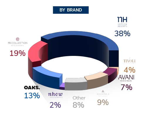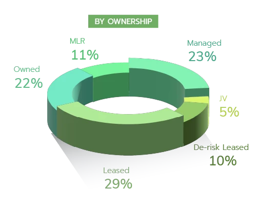 หมายเหตุ : * รวมโรงแรมที่บริษัทลงทุนเองที่จะเปิดตัวในอนาคตและกิจการร่วมค้าที่ได้มีข้อผูกพันแล้ว ตลอดจนโรงแรมภายใต้การเช่าบริหารและสัญญารับจ้างบริหารที่เซ็นสัญญาแล้ว